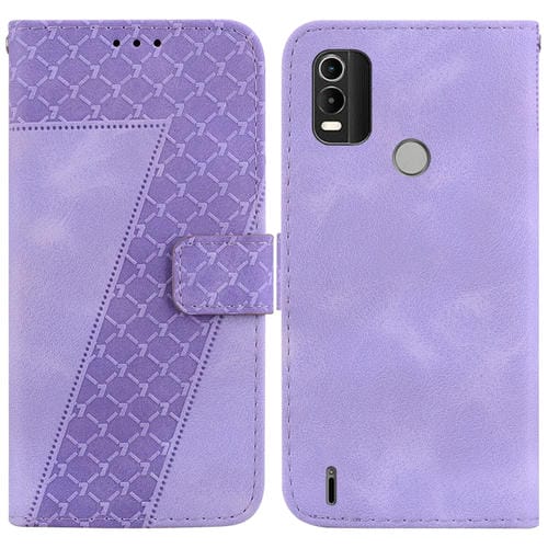 Funda de Cuero En Relieve en Forma de 7 para Nokia C21 Plus (Púrpura)