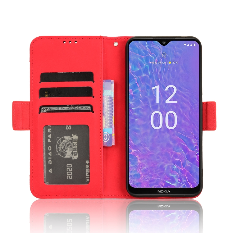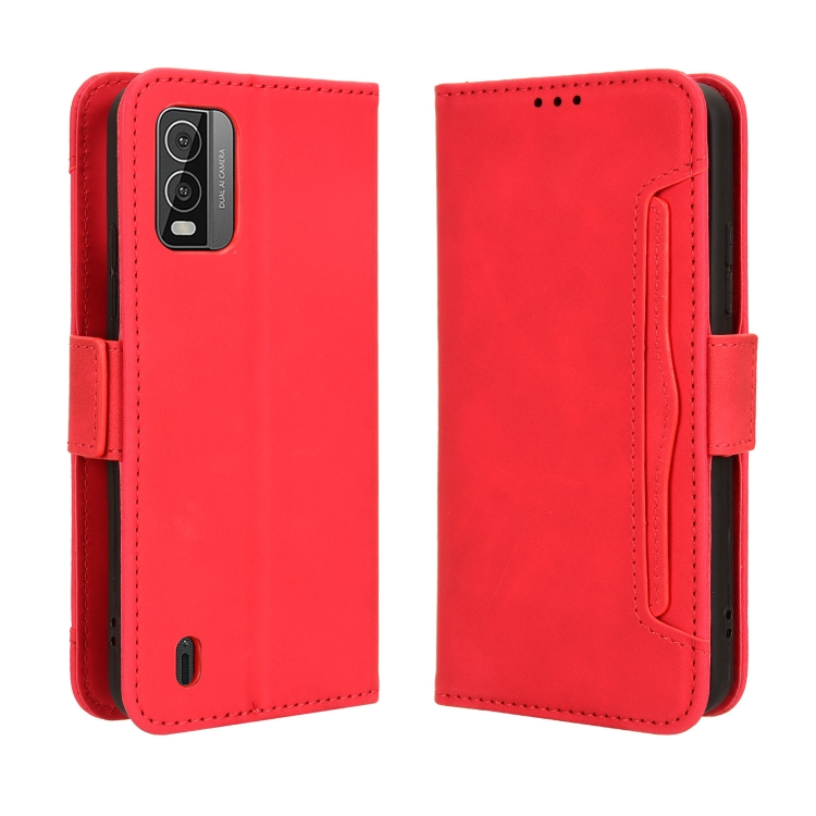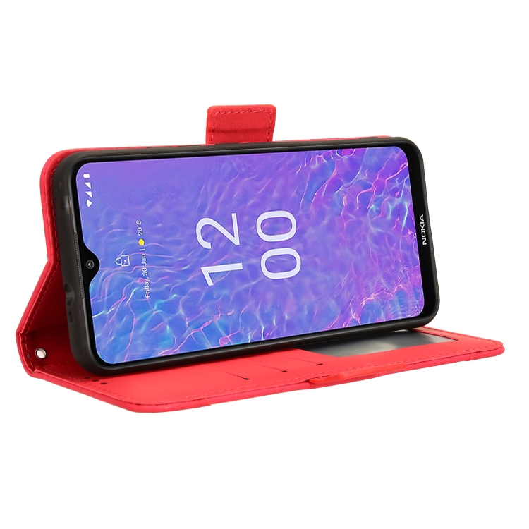 Funda de Cuero para Nokia C210 Skin Feel con Textura Becerro y Ranuras para Tarjetas (Rojo)