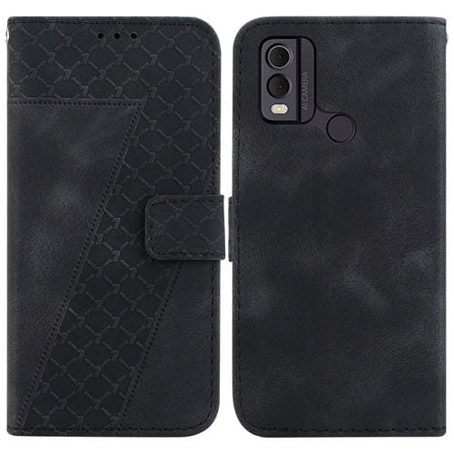 Funda de Cuero para Nokia C22 con Relieve en Forma de 7 (Negro)