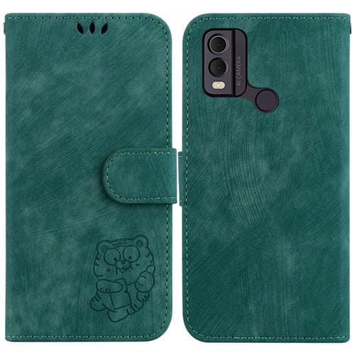 For Nokia C22 Little Tiger Embossed Leather Phone Case(Green)