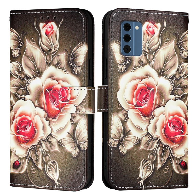 Funda para Nokia C300 de Cuero con Tejido Liso y Patrón de Rosas en Negro
