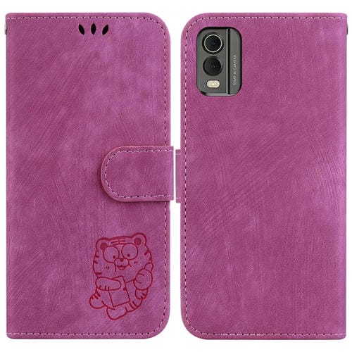 For Nokia C32 Little Tiger Embossed Leather Phone Case(Rose Red)