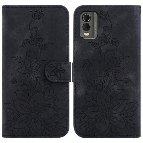 For Nokia C32 Lily Embossed Leather Phone Case Cover (Black)
