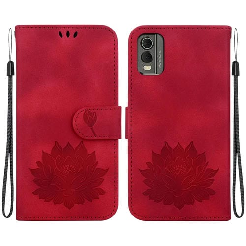 Funda de Cuero En Relieve para Nokia C32 Lotus Teléfono (Rojo)