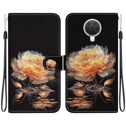 Funda para Nokia G10 / G20 de Cuero con Dibujo Coloreado y Textura de Cristal (Peonía Dorada)