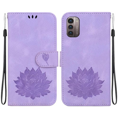 Funda de Cuero para Nokia G21 y G11 con Relieve de Loto (Púrpura)