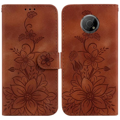 For Nokia G300 Lily Embossed Leather Phone Case Cover (Brown)