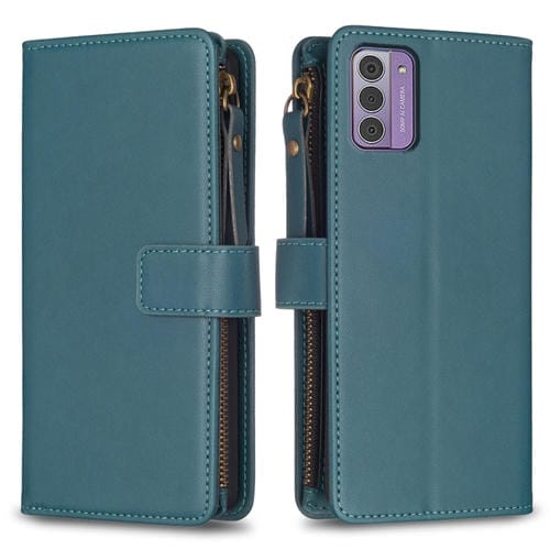 Funda Cartera para Nokia G42/G310 con 9 Ranuras para Tarjetas y Cremallera (Verde)