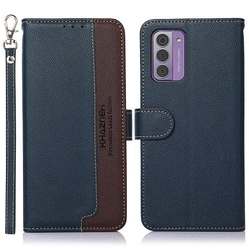 Funda para Nokia G42 Khazneh con Textura Litchi de Cuero y Protección RFID (Azul)