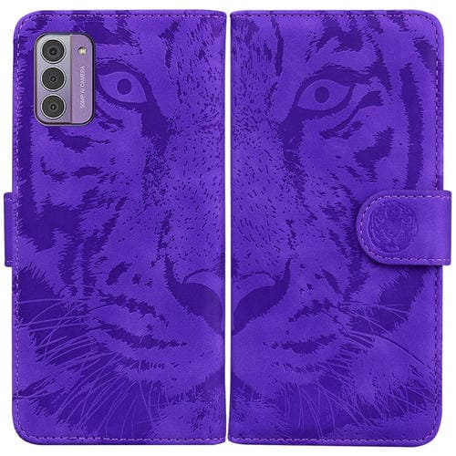 Funda de Cuero Flip para Nokia G42 con Diseño Tiger Embossing (Púrpura)
