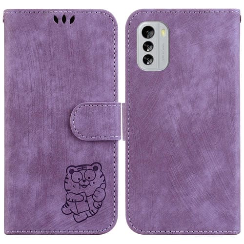 Funda de Cuero en Relieve para Nokia G60 Little Tiger para Teléfono (Púrpura)