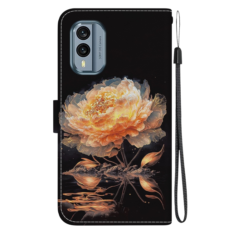 Funda de Cuero para Nokia X30 con Dibujo Coloreado y Textura de Cristal (Peonía Dorada)