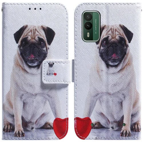 Funda Flip de Cuero para Nokia Xr21 con Dibujo Coloreado (Pug)