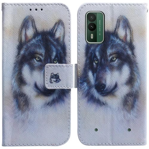 Funda de Cuero con Tapa para Nokia Xr21 Dibujo Lobo Blanco