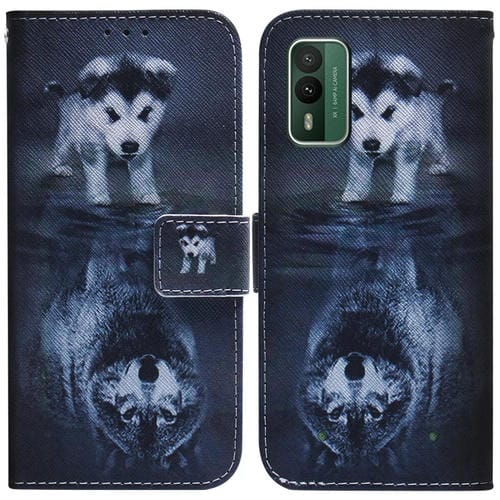 Funda de Cuero con Tapa para Nokia Xr21 con Dibujo de Lobo y Perro