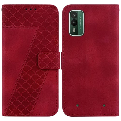 Funda de Cuero para Nokia Xr21 con Relieve en Forma de 7 (Rojo)