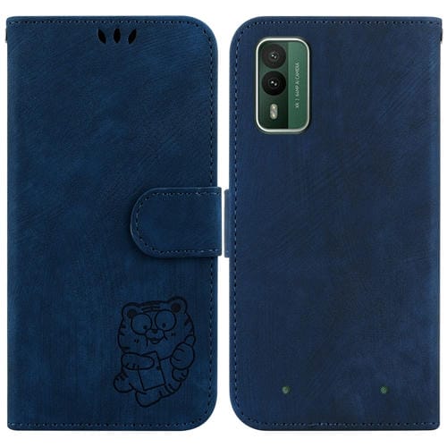 Funda de Cuero en Relieve para Nokia Xr21 Little Tiger para Teléfono (Azul Oscuro)