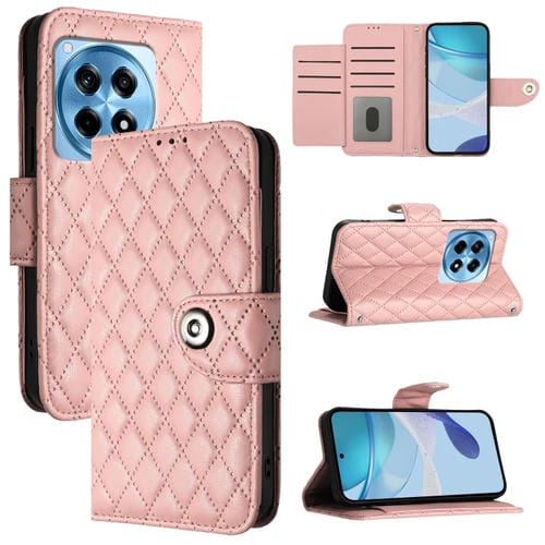 Funda para OnePlus 12R de Cuero con Tapa, Textura Rómbica y Cordón (Rosa Coral)