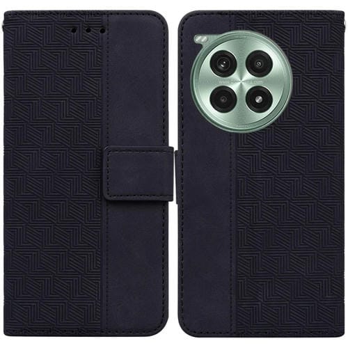 Funda de Cuero con Relieve Geométrico para OnePlus Ace 3 Pro (Negro)