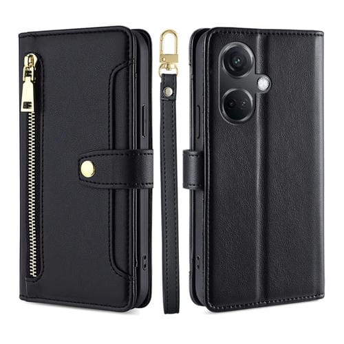 Funda de Cuero para OnePlus Nord Ce3 5G Lite con Billetera y Cremallera Cruzada (Negro)