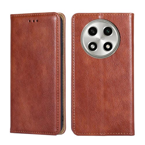 Para Oppo A2 Pro 5G Estuche para Teléfono de Cuero Magnético de Color Sólido con Aceite Brillante (Marrón)