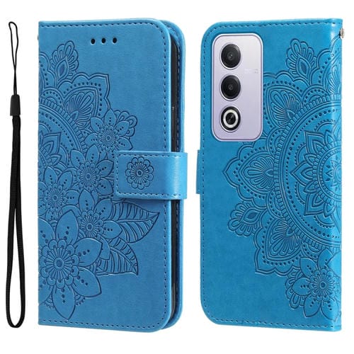 Para Oppo A3 Pro 5G Global / India Funda para Teléfono de Cuero con Estampado de Flores de Siete Pétalos (Azul)