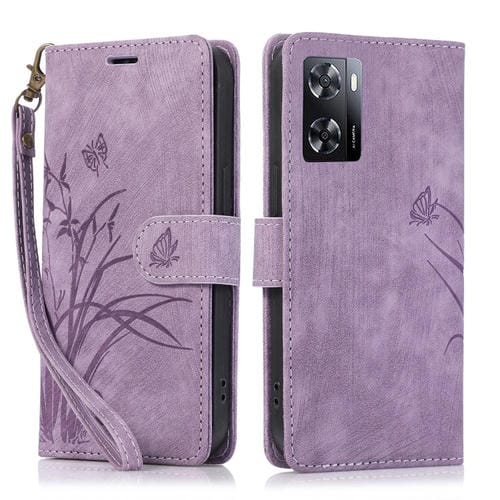 Para Oppo A57 4G / A57S Funda para Teléfono de Cuero con Relieve de Mariposa Orquídea (Púrpura)