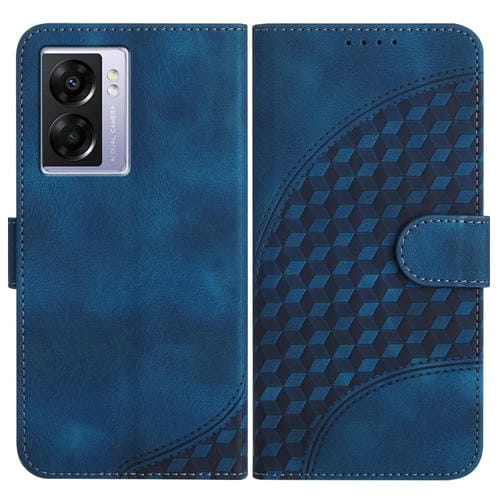 Para Oppo A57 5G / A77 5G / A57 4G Global Yx0060 Funda de Cuero para Teléfono con Relieve y Cabeza de Elefante con Cordón (Azul Real)