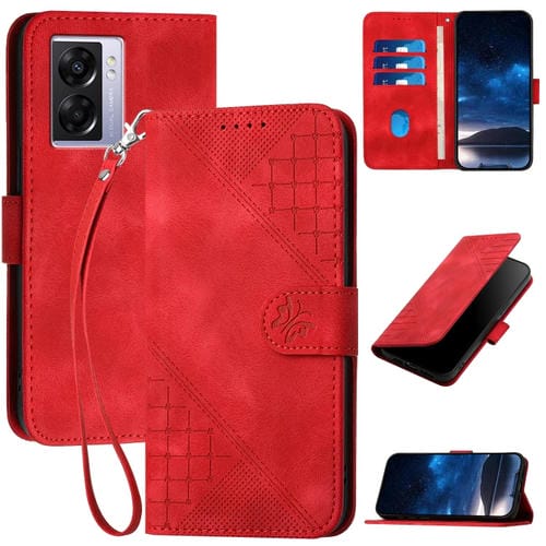 Para Oppo A57E 4G Global Yx0080 Grid Butterfly Patrón En Relieve Funda de Cuero con Tapa para Teléfono con Cordón (Rojo)