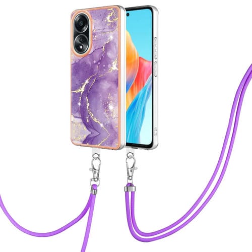 Para Oppo A58 4G Caja de Teléfono Imd de Doble Cara de Mármol Galvanizado con Cordón (Púrpura 002)