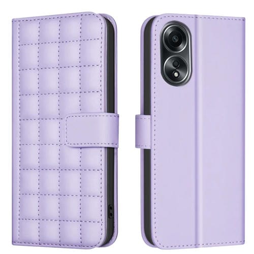 Para Oppo A58 4G Funda de Cuero con Textura Cuadrada (Púrpura)