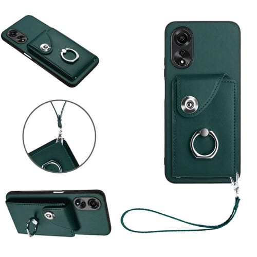 Para Oppo A58 4G Global Organ Card Bag Ring Holder Pu Funda para Teléfono con Cordón (Verde)