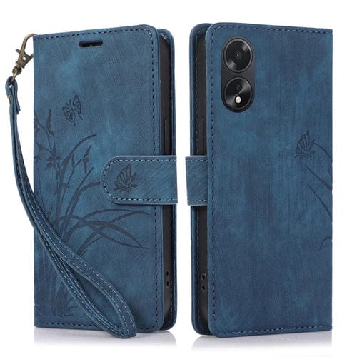 Para Oppo A58 4G Orchid Butterfly Funda de Cuero para Teléfono En Relieve (Azul)