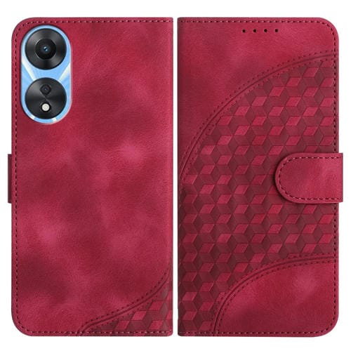 Para Oppo A58 4G Yx0060 Funda de Cuero para Teléfono con Relieve y Cabeza de Elefante con Cordón (Rojo Rosa)