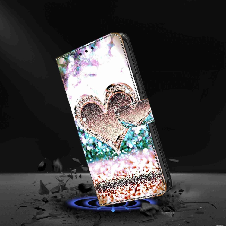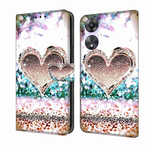 Para Oppo A58 5G Crystal 3D Funda Protectora de Cuero para Teléfono a Prueba de Golpes (Corazón de Diamante Rosa)