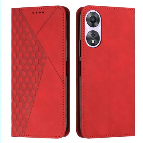 Para Oppo A58 / A78 Estuche de Teléfono de Cuero Magnético con Sensación de Piel con Empalme de Diamantes (Rojo)