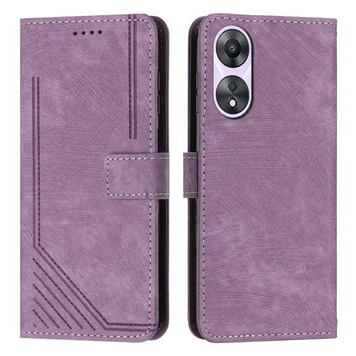 Para Oppo A58 / A78 Skin Feel Funda de Cuero para Teléfono con Patrón de Rayas y Cordón Largo (Púrpura)