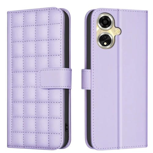 Para Oppo A59 5G Funda de Cuero con Textura Cuadrada (Púrpura)