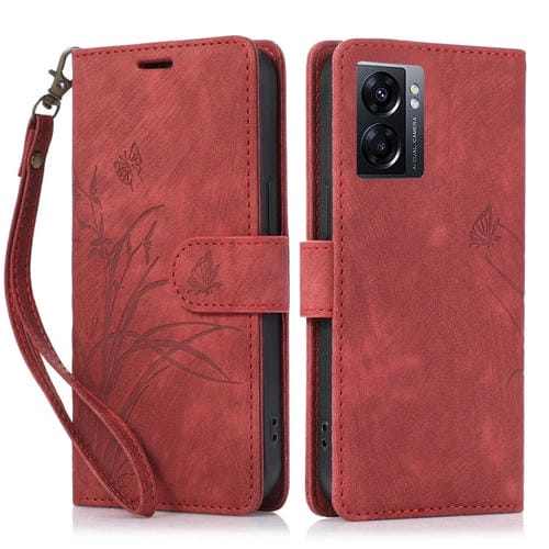 Para Oppo A77 4G / A77S Funda para Teléfono de Cuero con Relieve de Mariposa Orquídea (Rojo)