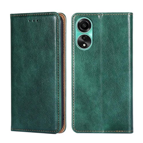 Para Oppo A78 4G Estuche de Teléfono de Cuero Magnético de Color Sólido con Aceite Brillante (Verde)