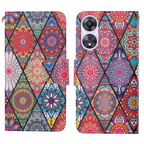 Para Oppo A78 4G Funda de Cuero para Teléfono con Patrón de Dibujo Coloreado (Tótem de Diamante)