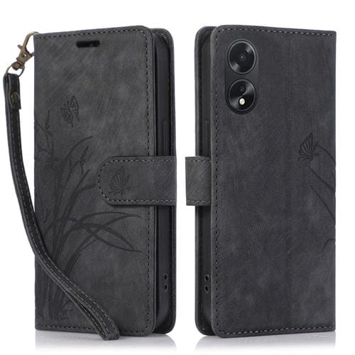 Para Oppo A78 4G Orchid Butterfly Funda de Cuero para Teléfono En Relieve (Negro)