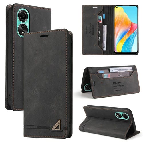 Para Oppo A78 4G Skin Feel Funda de Cuero con Tapa Horizontal con Cepillo Antirrobo y Soporte (Negro)