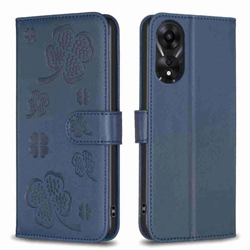 Para Oppo A78 5G Funda para Teléfono de Cuero con Relieve de Cuatro Hojas (Azul)