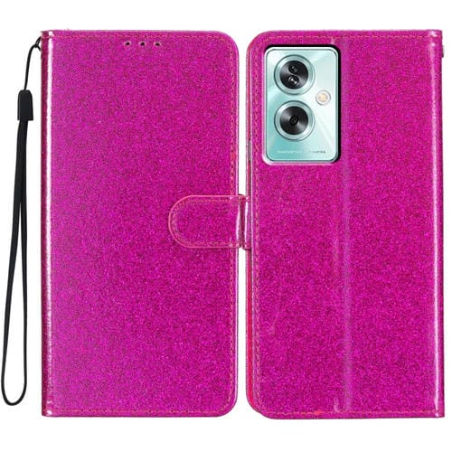 Para Oppo A79 5G / A2 5G Funda de Cuero con Tapa En Polvo con Purpurina (Rojo Rosa)