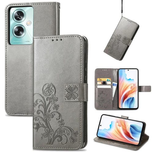 Para Oppo A79 5G / A2 5G Funda para Teléfono de Cuero con Hebilla En Relieve y Cierre de Cuatro Hojas (Gris)