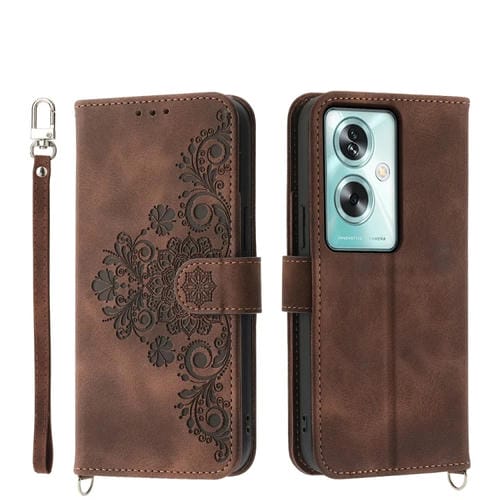 Para Oppo A79 5G Funda de Cuero para Teléfono con Billetera En Relieve y Flores con Sensación de Piel (Marrón)