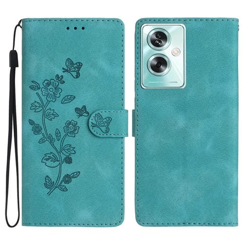 Para Oppo A79 5G Funda de Teléfono de Cuero con Patrón de Estampado de Mariposa y Flor (Azul Cielo)