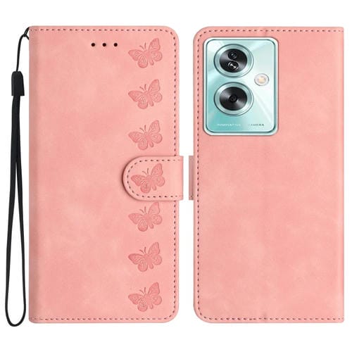 Para Oppo A79 5G Funda para Teléfono de Cuero con Relieve de Siete Mariposas (Rosa)