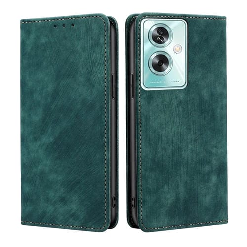 Para Oppo A79 5G Rfid Funda de Teléfono de Cuero Magnético con Cepillo Antirrobo (Verde)